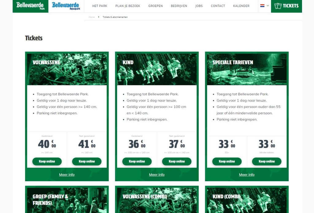 Les tarifs varient selon la taille du groupe, la période de l’année et le type de billet acheté (billet journée, billet demi-journée, etc.). Sur cette page, vous pouvez consulter ces prix sur le site web de Bellewaerde en contactant le service client.