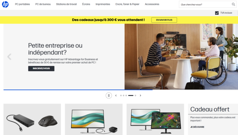 Chez HP, les bons plans ne tombent pas du ciel: il faut viser les bonnes catégories. La boutique belge vend surtout des PC portables, PC de bureau, écrans, imprimantes, consommables et accessoires. On y retrouve aussi des univers comme HyperX, Poly, Instant Ink et le Student Store. Nous conseillons de surveiller les offres spéciales et les cadeaux liés au montant du panier, car HP pousse souvent ce type d’avantage sur sa boutique officielle.