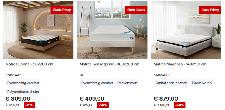 - Speciale Black Friday aanbiedingen op matrassen, boxsprings en beddengoed