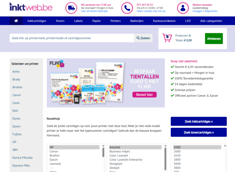 Inktweb is een Nederlandse webshop die zich volledig focust op printersupplies zoals inktcartridges, toners en papier. Je vindt er compatibele én originele producten van merken zoals HP, Canon, Epson en Brother. Wat mij opvalt: hun assortiment telt duizenden artikelen, waardoor de kans groot is dat jouw printer ertussen zit. Ze opereren vanuit Nederland en leveren ook snel in België, vaak binnen 1 tot 2 werkdagen.