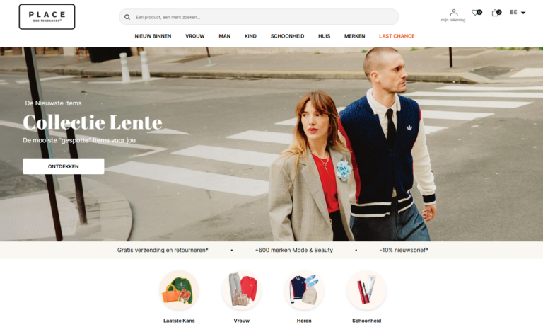 Place des Tendances is een Franse fashion webshop, gelanceerd in 2009 en onderdeel van de bekende Printemps Group uit Parijs. Je shopt hier meer dan 600 merken, van premium labels zoals Sandro en Maje tot toegankelijke namen zoals Levi’s en Nike. Het platform focust op mode, schoenen en accessoires voor dames, heren en kids. Hun hoofdzetel ligt in Frankrijk, wat je ook merkt aan de sterke Parijse stijl die overal doorheen zit.